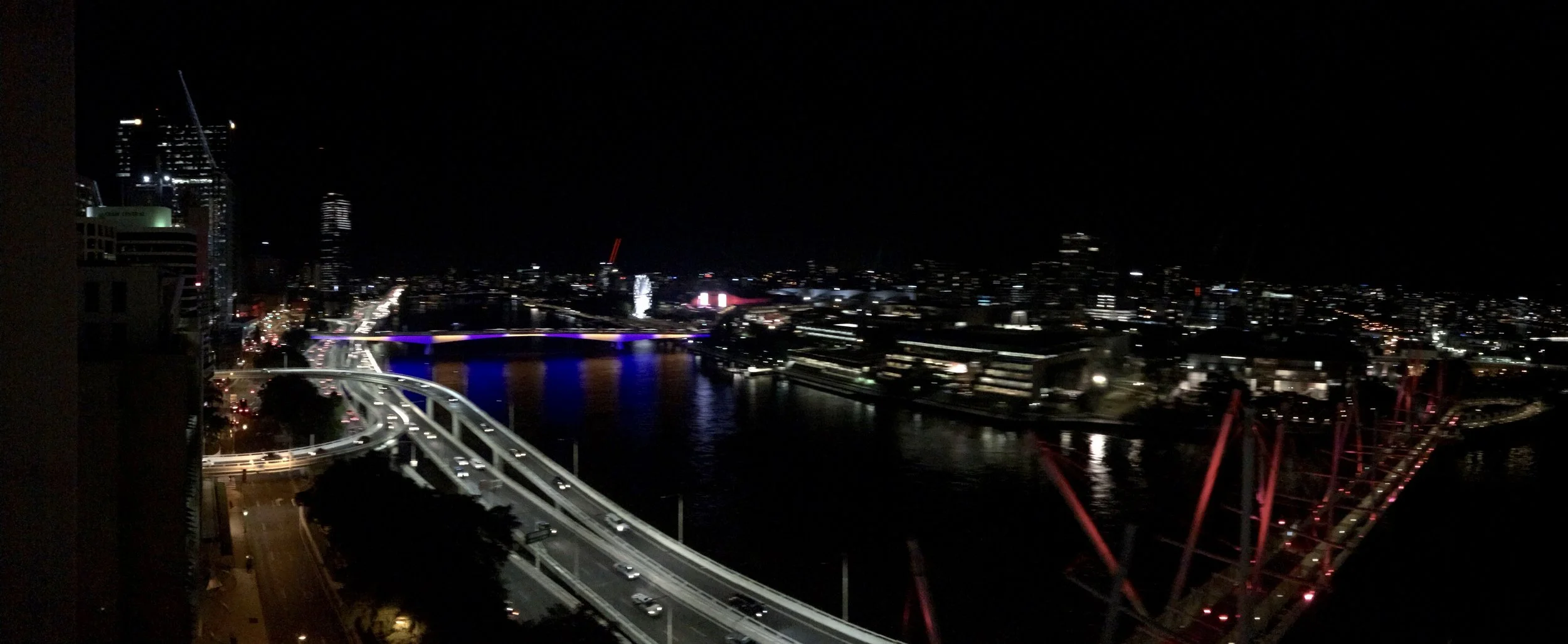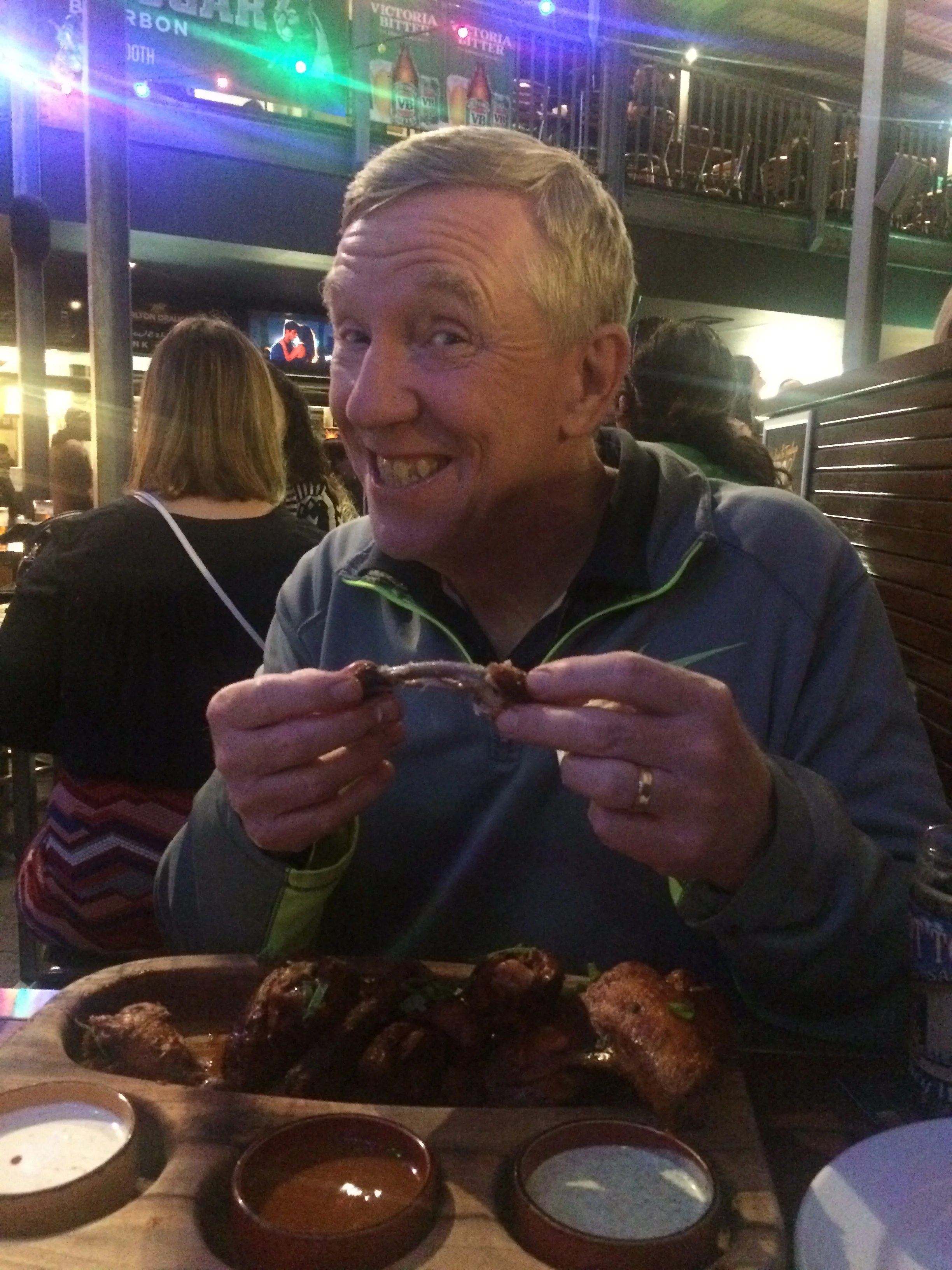 Across the river from our place was the arboretum, the QUT campus (Queensland University of Technology), outdoor theater, small water park, giant ferris wheel, and most importantly the bar and restaurant quarter, similar to the former “flats” of Cleveland. This was a great place to stroll, people watch, and imbibe in tasty delights—and we did just that into the evening. The walk home at night across the pedestrian bridge was scenic with multi colored light patterns on the many buildings and bridges along the river walk—just beautiful.