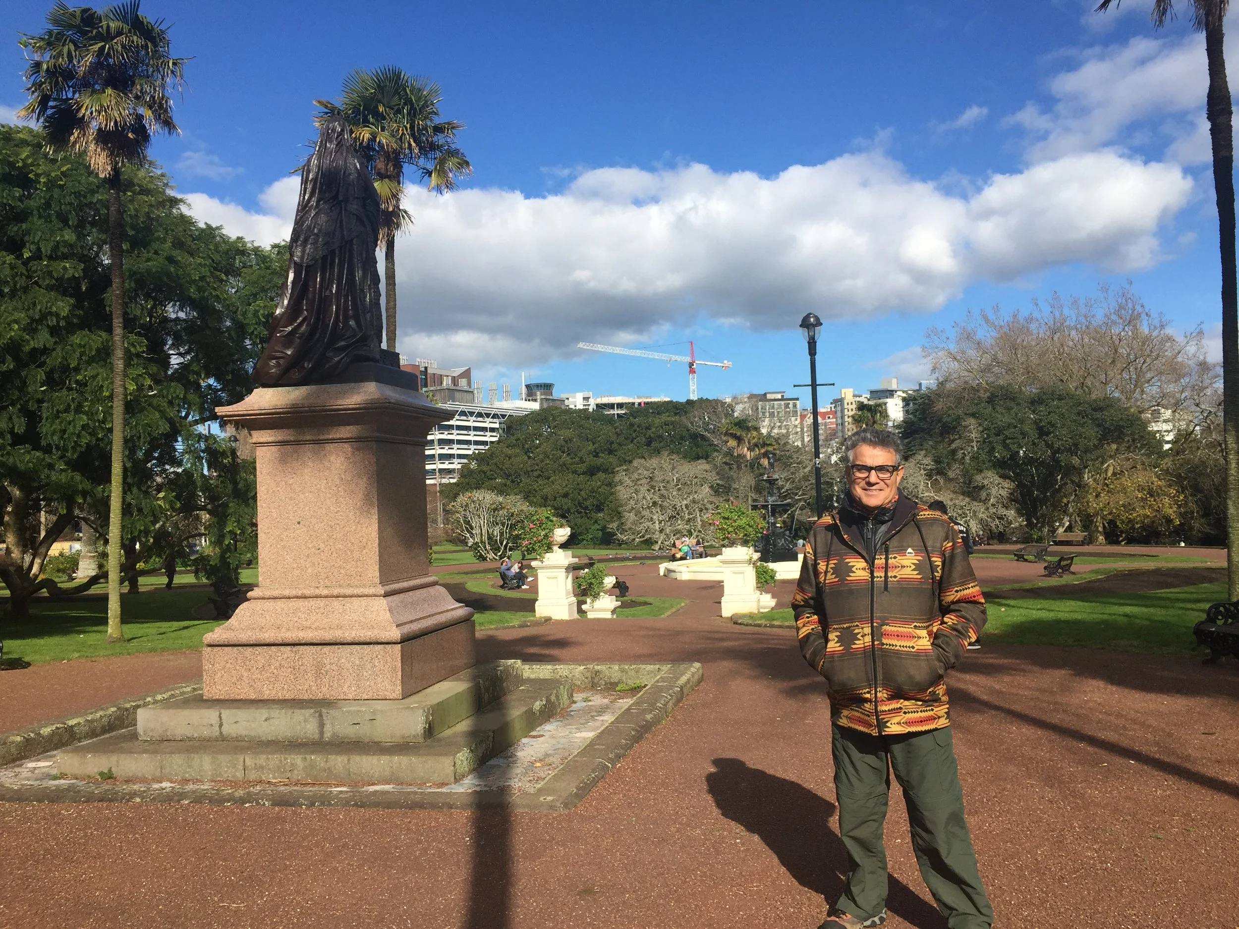 Frank at Price Albert park, Queen Victoria's statue in the background