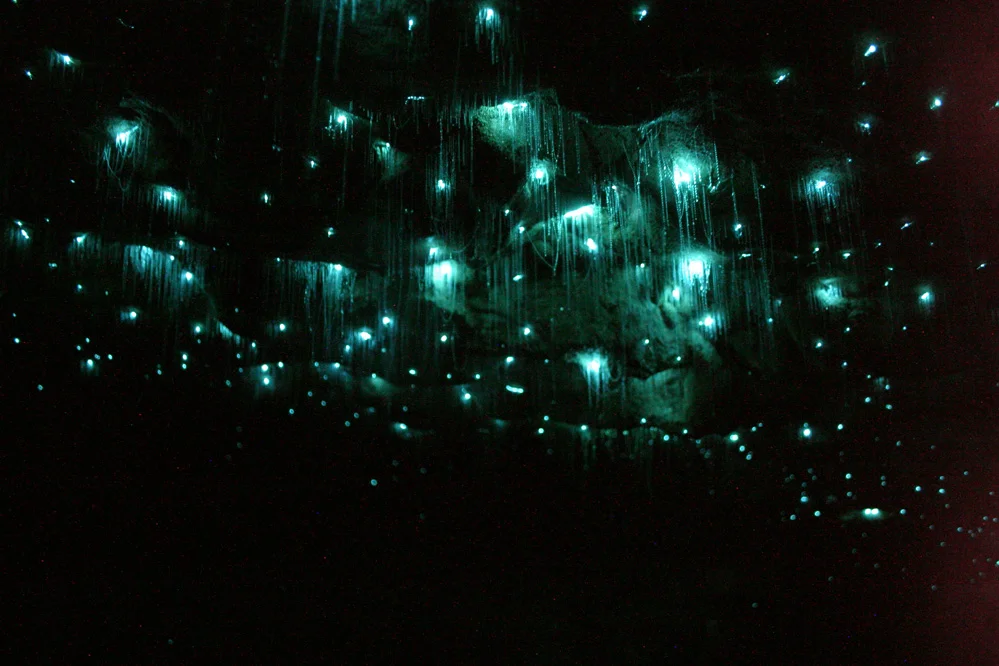 The second cave, which was black as a tomb, contained the Glow Worms. We rode in a small raft that was pulled over the water in the cave tunnel. Our layman’s explanation: These are the strangest tiny creatures that attach themselves to the ceiling in the thousands and lower single strands of goo, about 3-4 inches, with the goal of trapping food that may fly or float through the caves driven by the light wind. They are not sensitive to light, but rather to vibrations, which cause each of them to glow in order to attract prey. The higher the vibration the brighter they glow. In a dark cave the glow reminds you of the vast stars in Milky Way Galaxy. It is really a phenomenal experience.