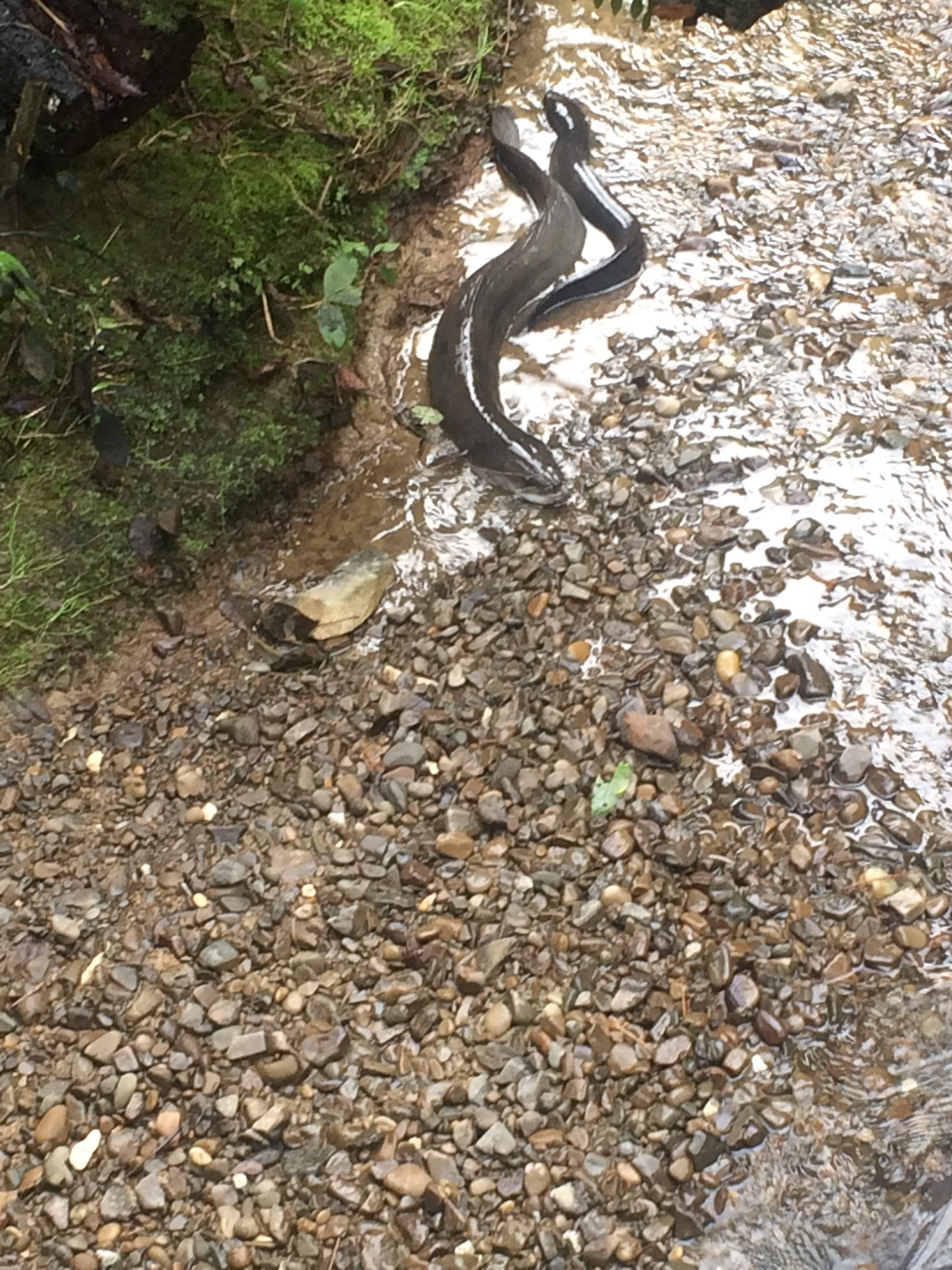 Ps. We also experience seeing large river EELS (2-3 feet long) that wind there way through the outdoor streams from bank to bank where you might expect to see trout. Apparently they are edible and are eaten by the Moira and others.