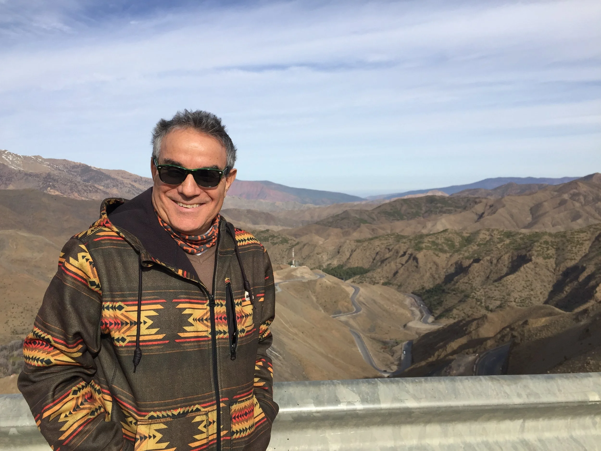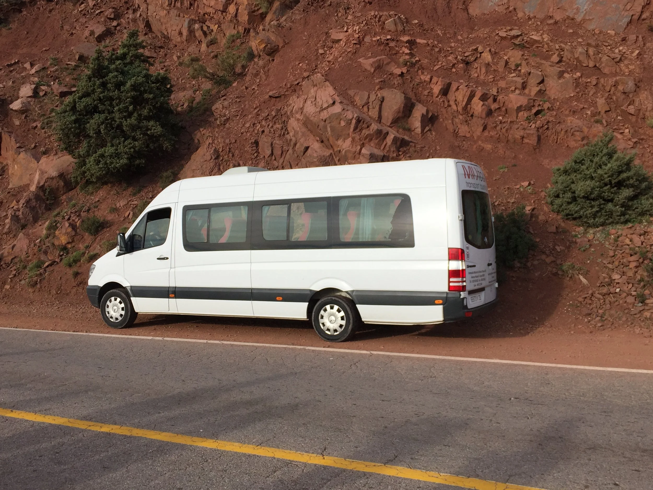 We start early the next day for a full day of driving south to the desert of Morocco The next morning we loaded up on the 15 space Van and started the drive toward the southeast portion of the country through the Atlas Mountains and onward to the Sahara. The terrain in this part was barren with foothills, plateau and finally the Great Atlas Mts. Top height being 2400 meters.