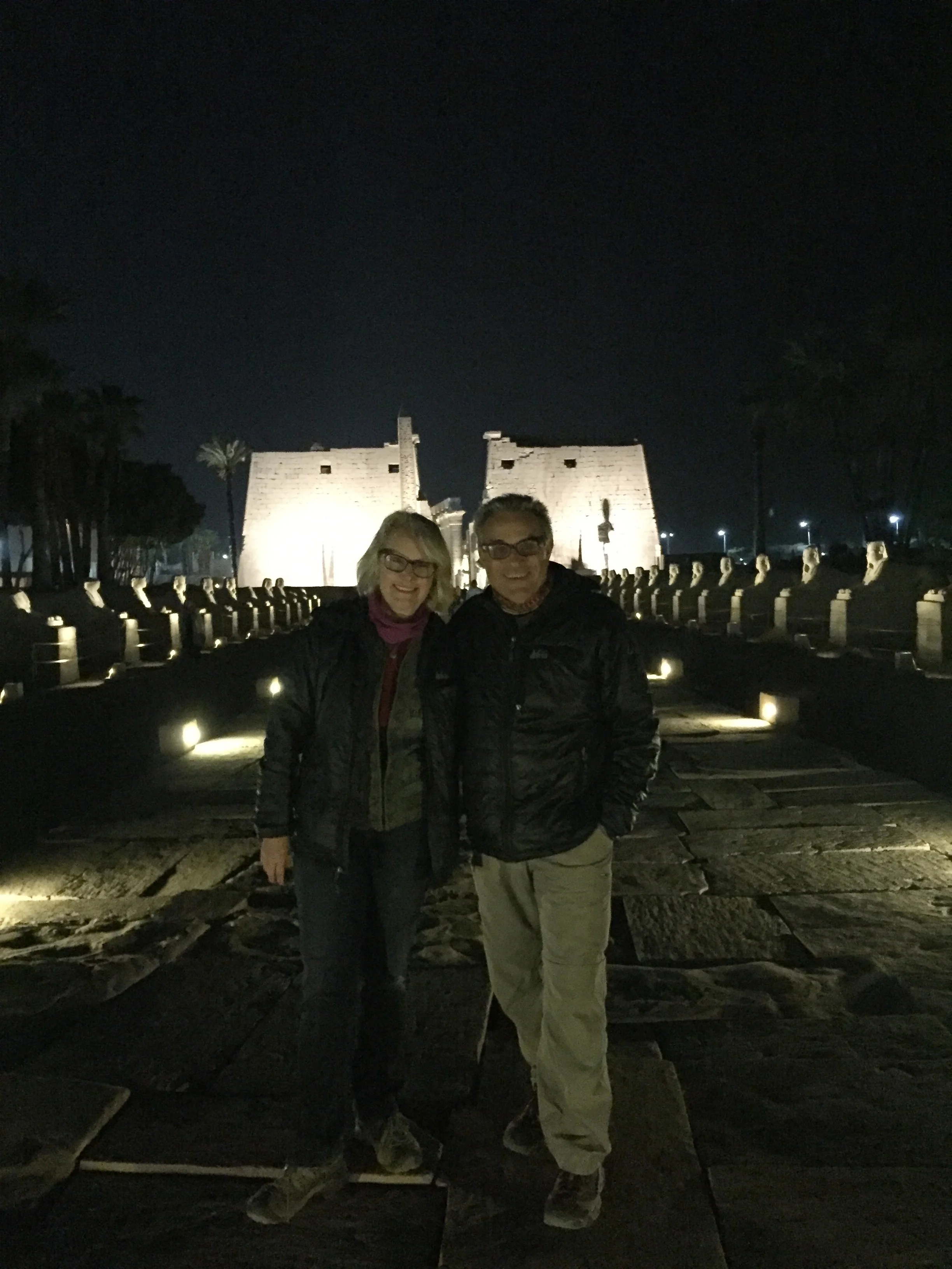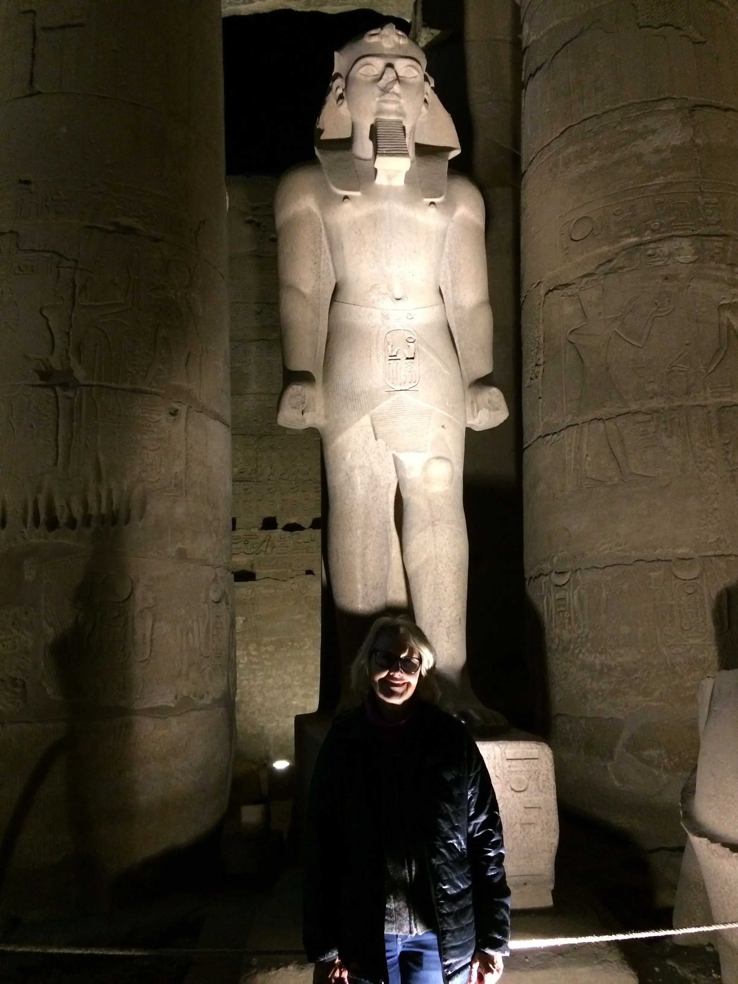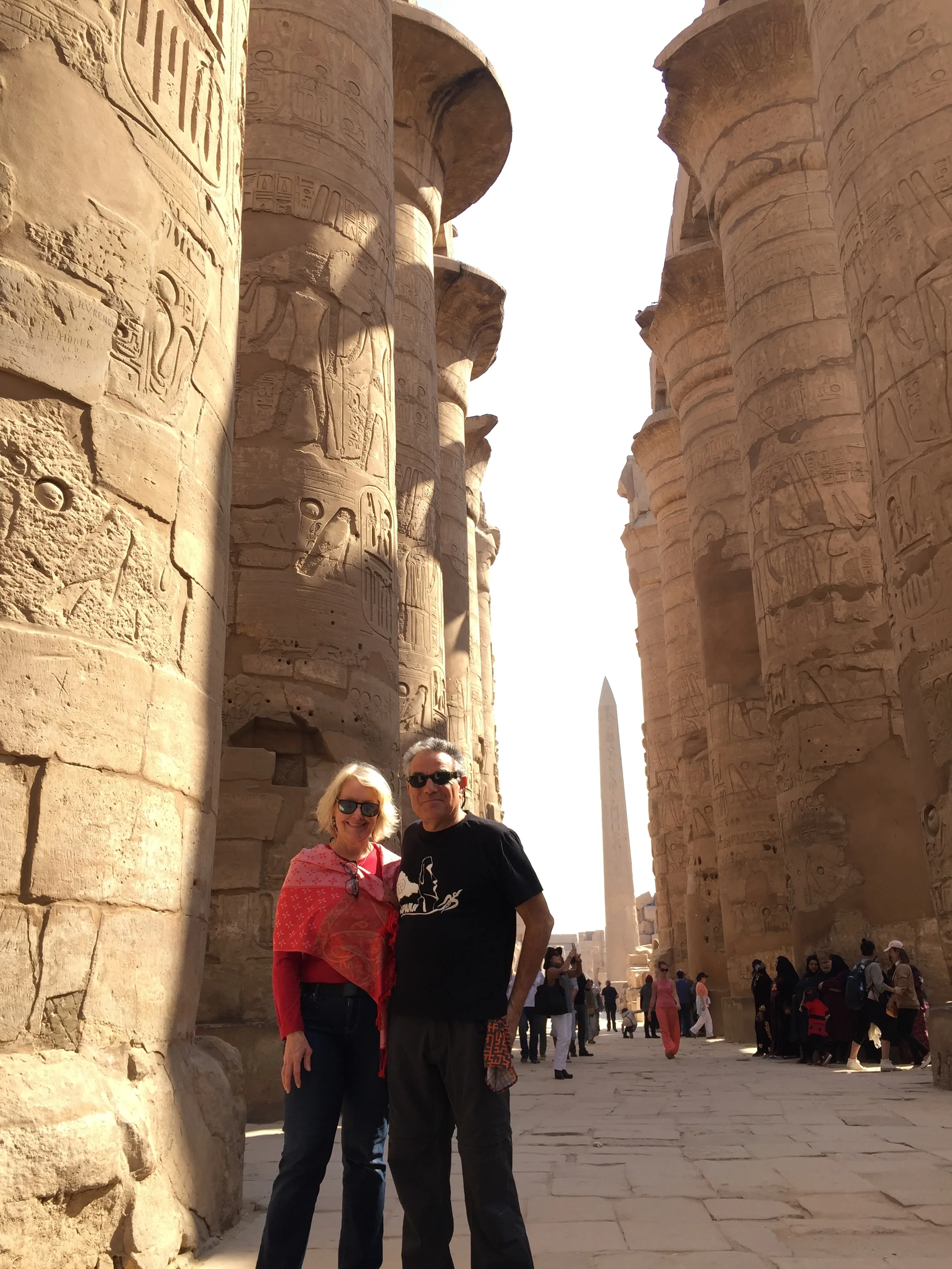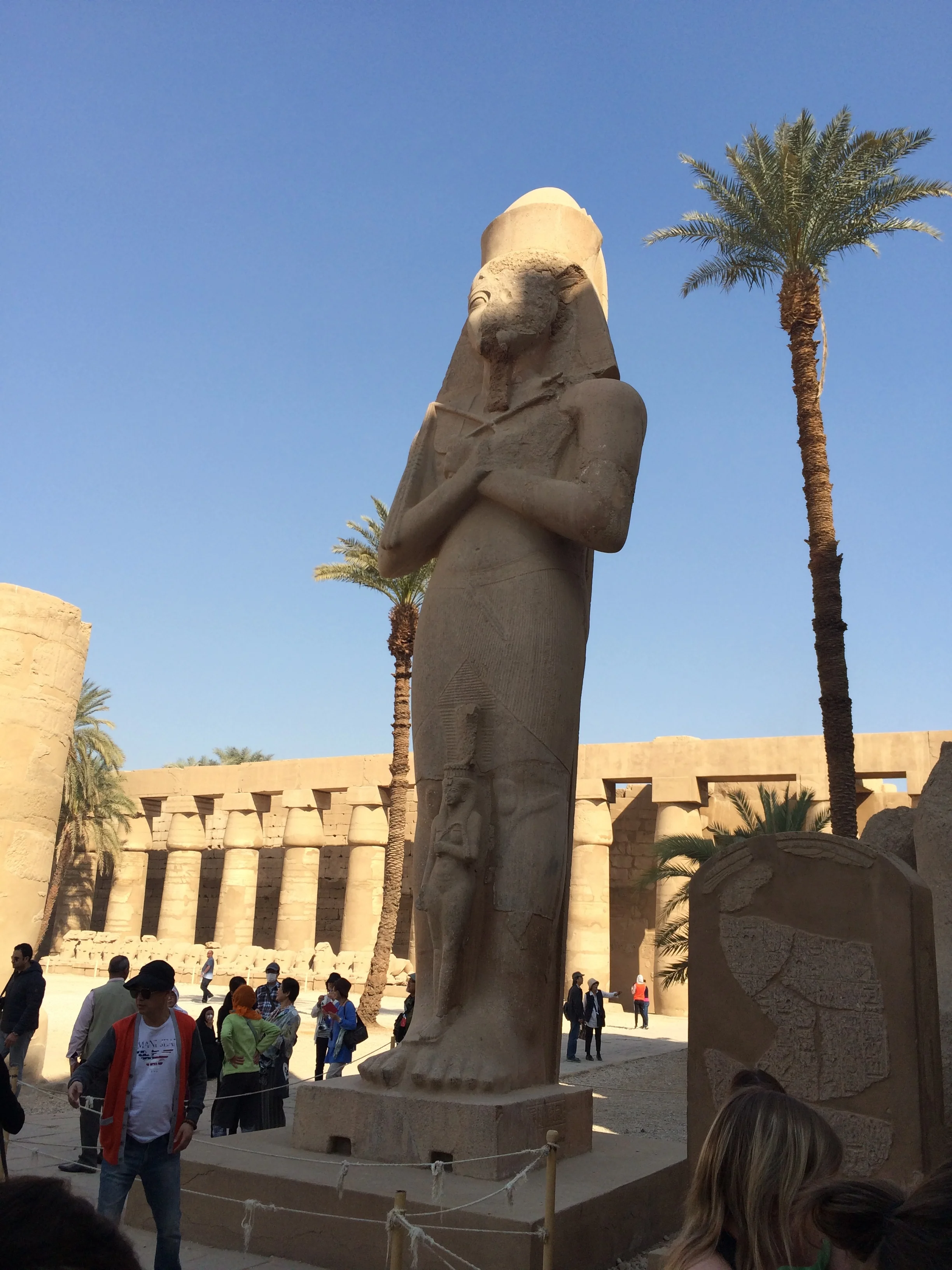 After 4 hours of sleep our race around Egypt continued in Luxor with a visit to the Temple of Karnak on the east bank of the Nile. The site is huge, the largest ancient religious site in the world, after the Angkor Wat Temple of Cambodia. (which we should visit in late spring!!). You enter the site down a street lined with ram’s head Sphynxs' and we are blown away by the beauty and size of the site. After a great review from our guild, Sam, we have free time to wander in awe. See the pics:
