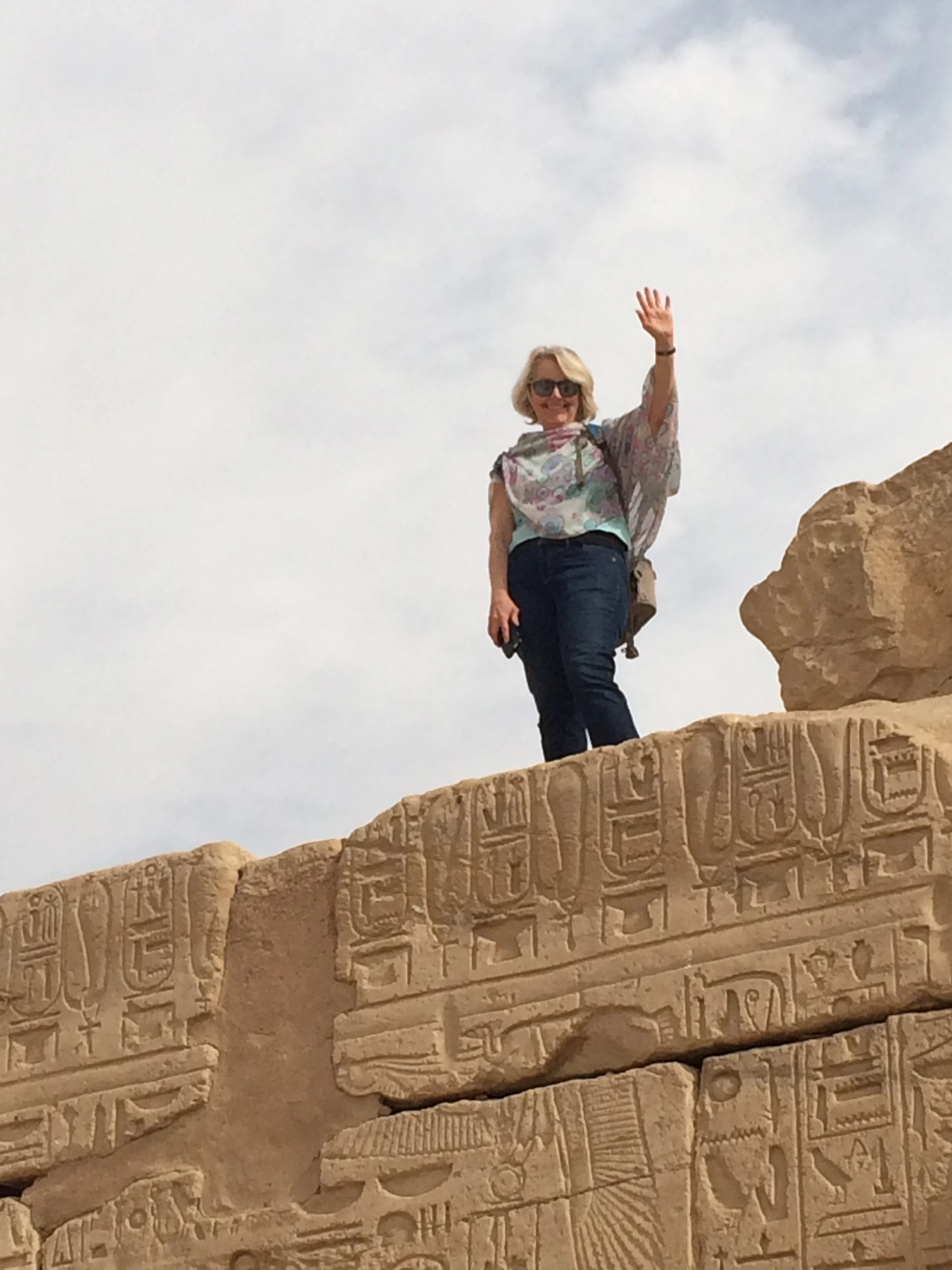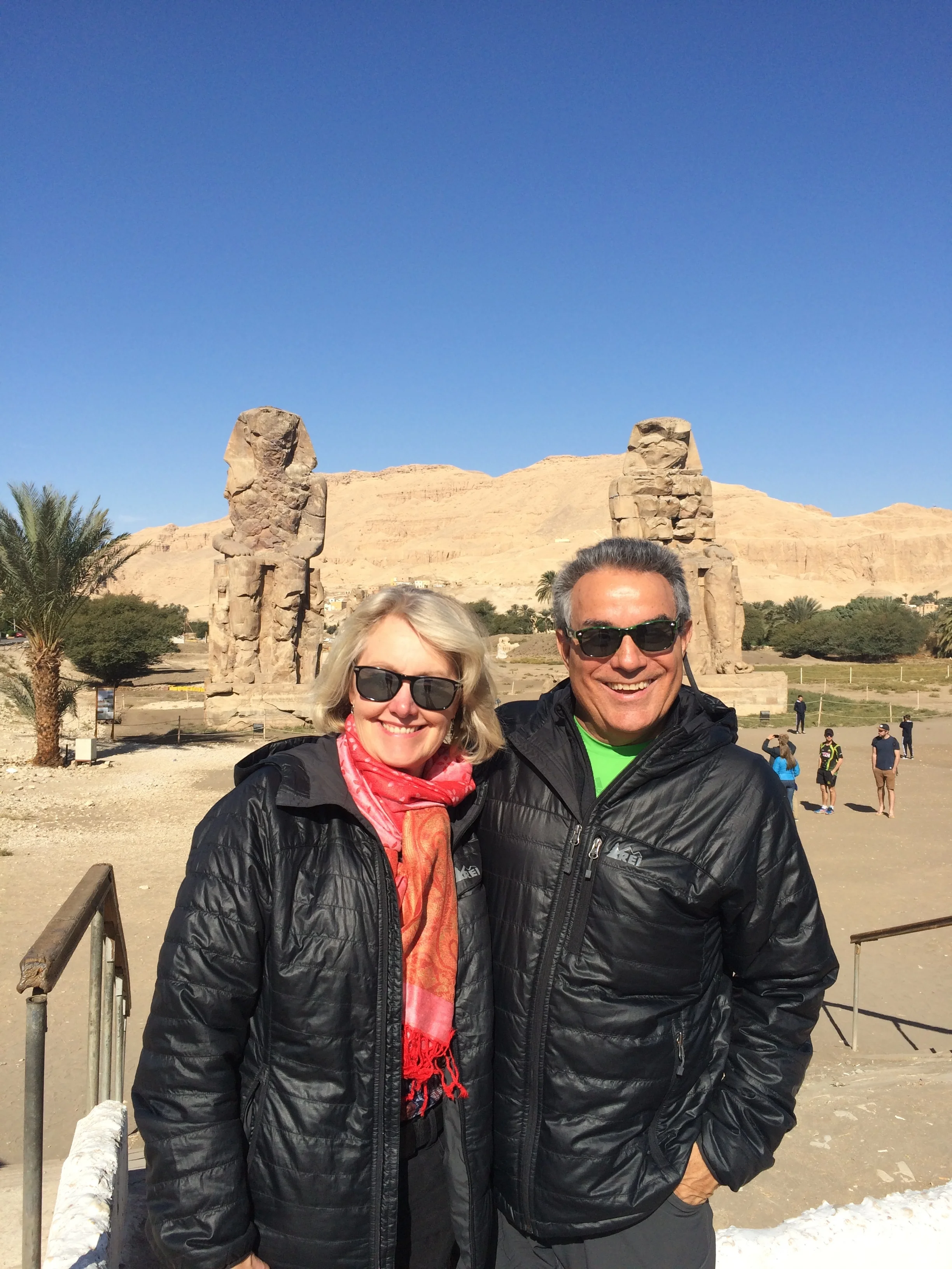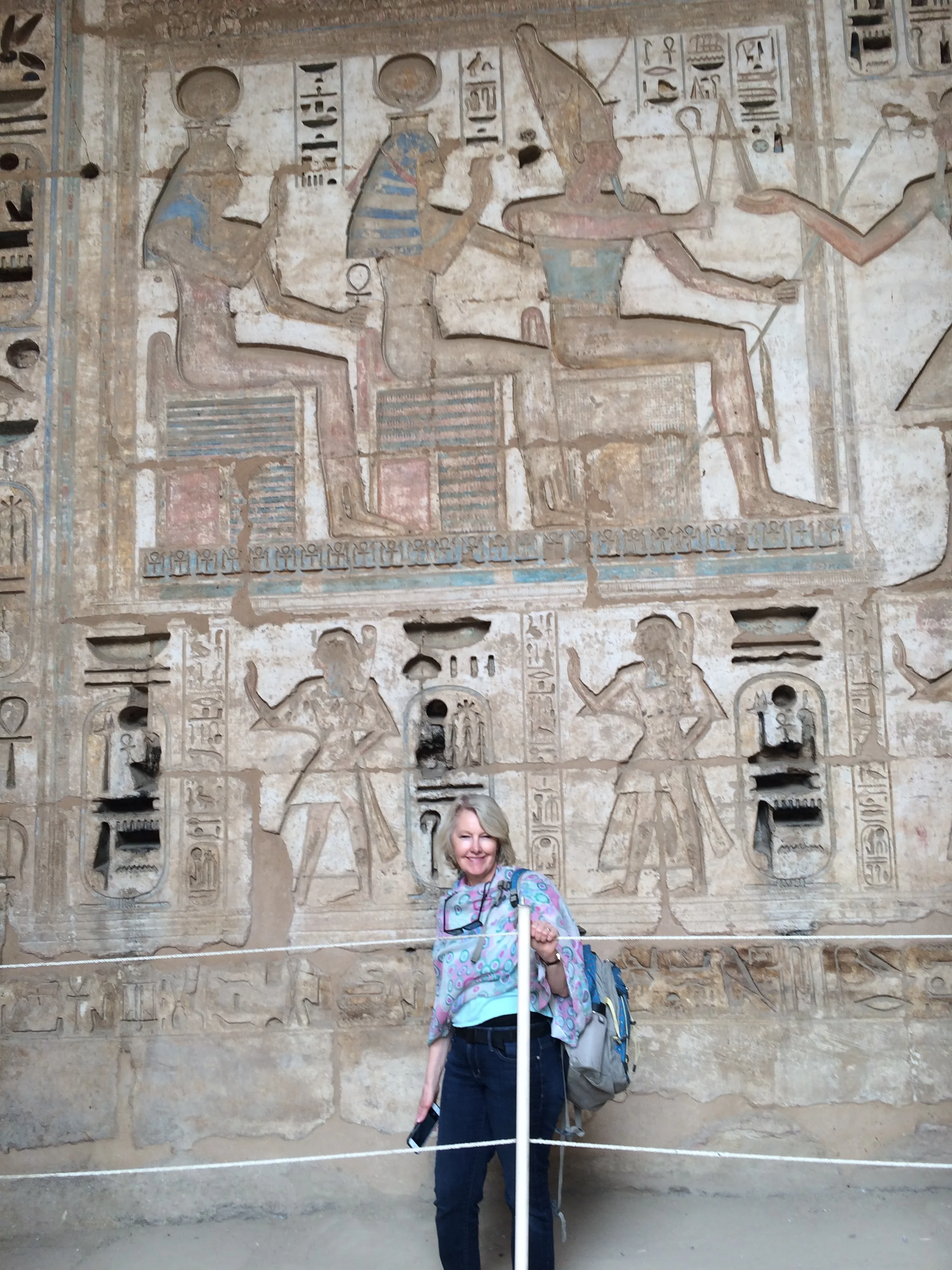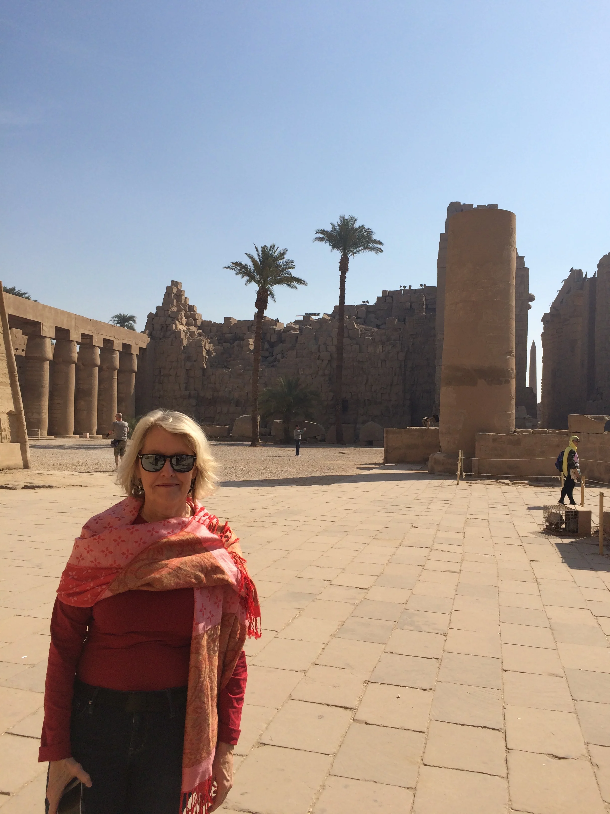 After 4 hours of sleep our race around Egypt continued in Luxor with a visit to the Temple of Karnak on the east bank of the Nile. The site is huge, the largest ancient religious site in the world, after the Angkor Wat Temple of Cambodia. (which we should visit in late spring!!). You enter the site down a street lined with ram’s head Sphynxs' and we are blown away by the beauty and size of the site. After a great review from our guild, Sam, we have free time to wander in awe. See the pics:
