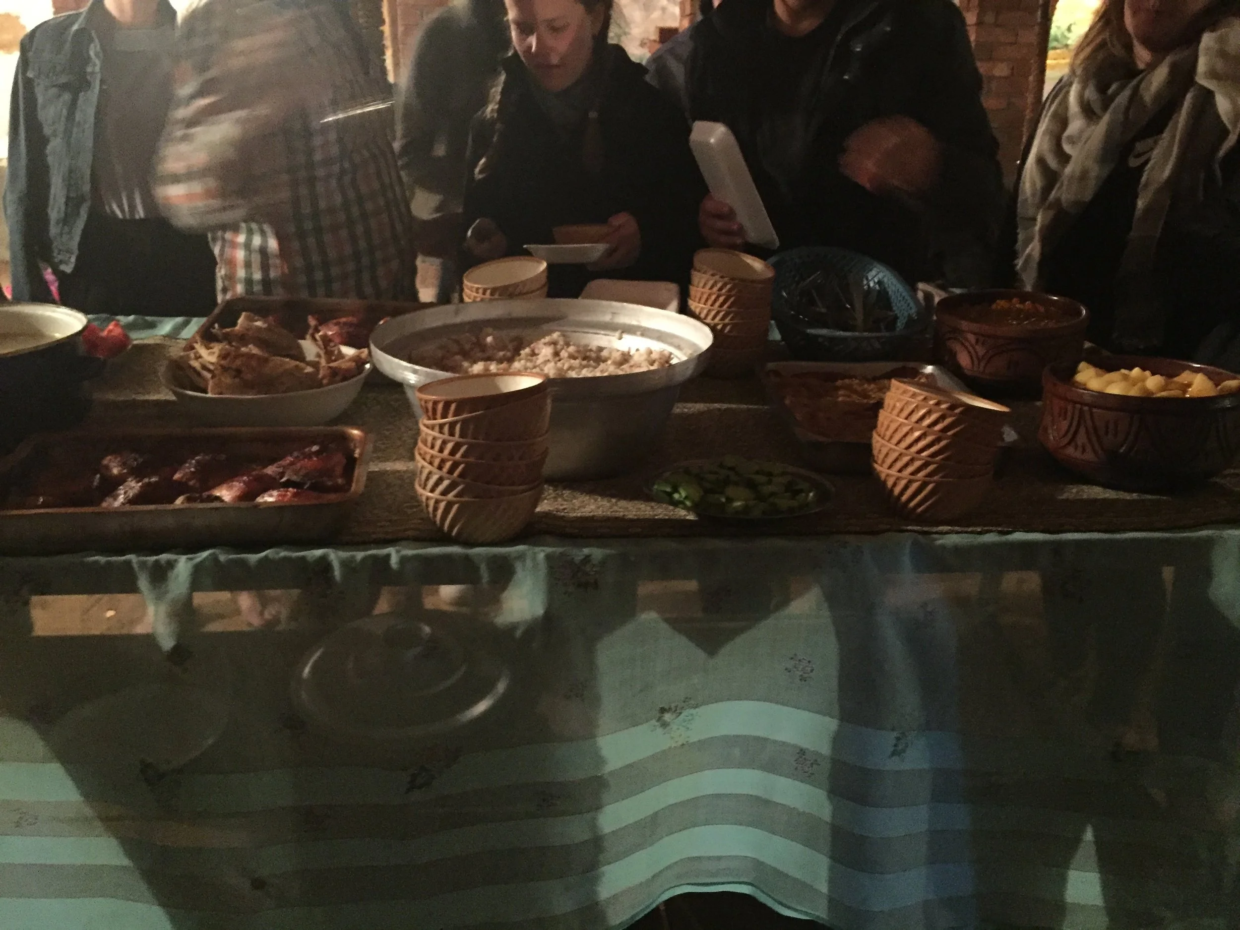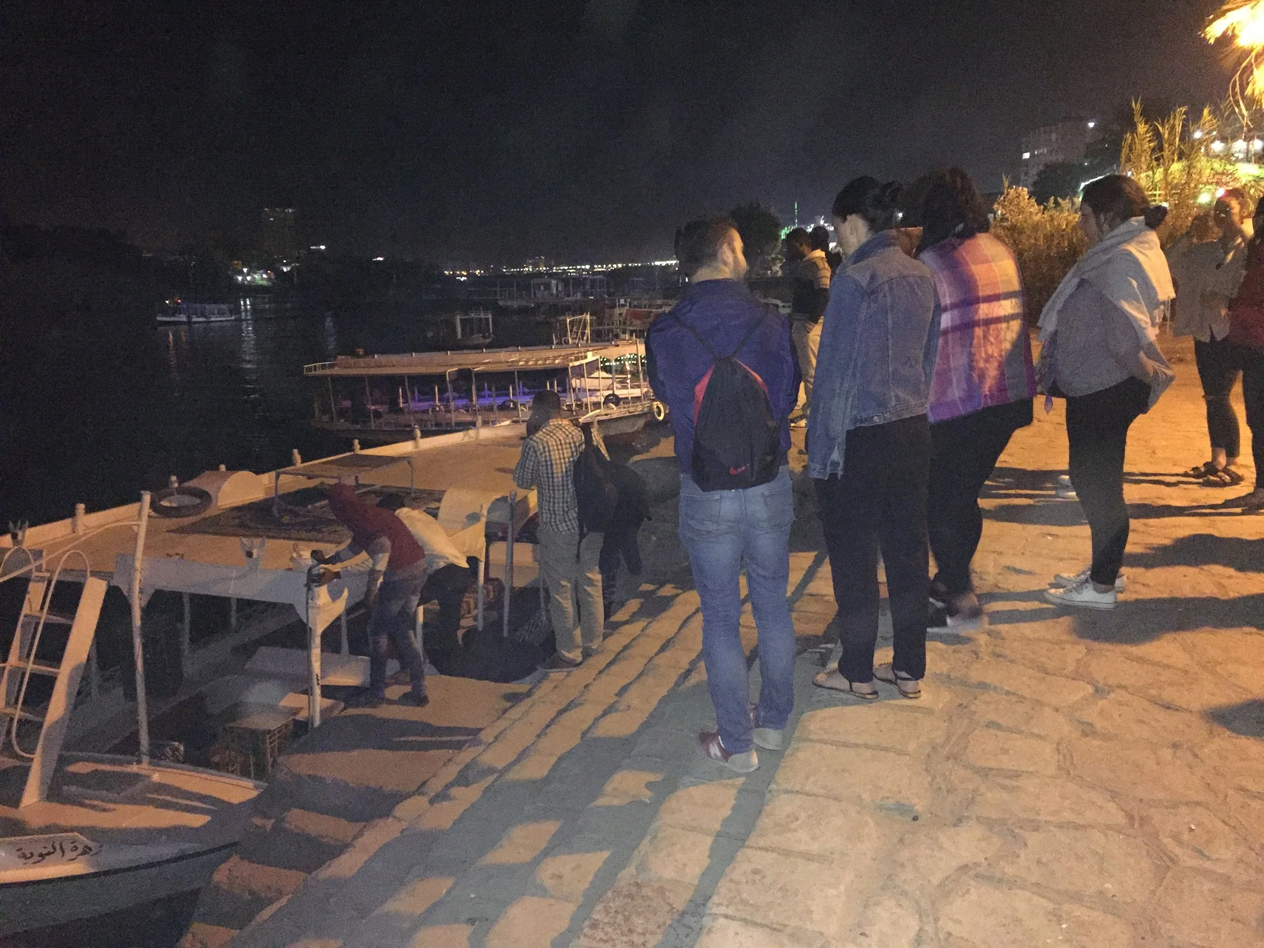 Our tour group is now splitting up and we join the group going on the Nile river cruise. We race to the boat, check in, and have 5 minutes to drop our luggage and meet back with the large group for the night excursion. We load on to a boat on the Nile and ferry to a small island where we go to dinner at a traditional Nubian home. The food is homey, filling and good. The history of the Nubians was provided by Sam our guide, they arise from the south Egypt, and the conversation within our group is great and even though tired, it is a great dinner. On our boat ride back out, the Nubian hosts break out in traditional singing and dancing, soon the engine of the boat stops and we are all dancing and singing as we float down the Nile.