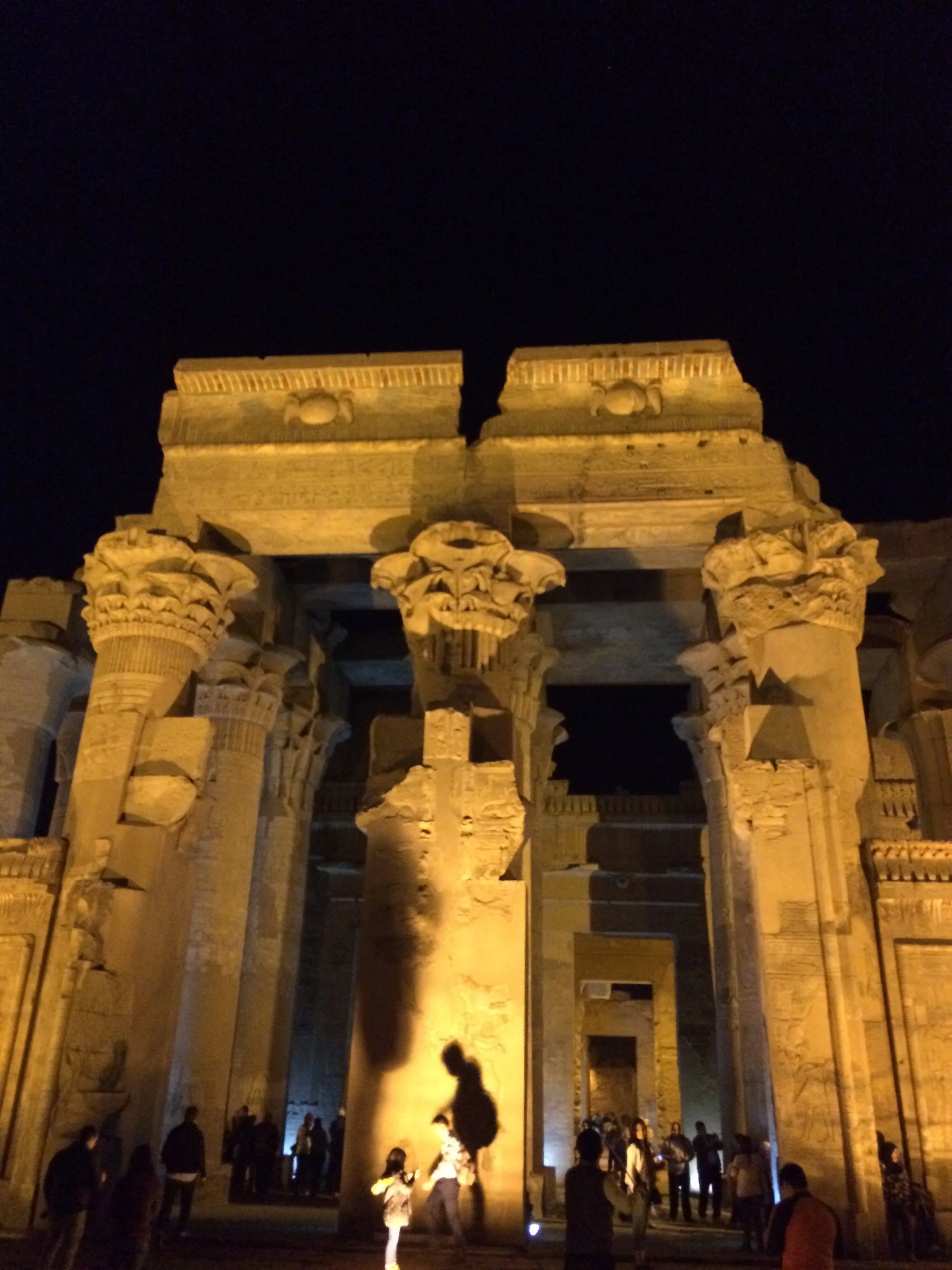 Our day was not done, before dinner we are off the ship to the next sight. We headed to Edfu to visit the largest and best preserved temple in Egypt. The temple is dedicated to the falcon god Horus and was built over a 180 year period from 237 BC to 57 BC. Then we visited another Temple dedicated to the crocodile god Sobek built during the Ptolemaic period. Back on the boat we have our first cruise dinner, very good with the best service yet.