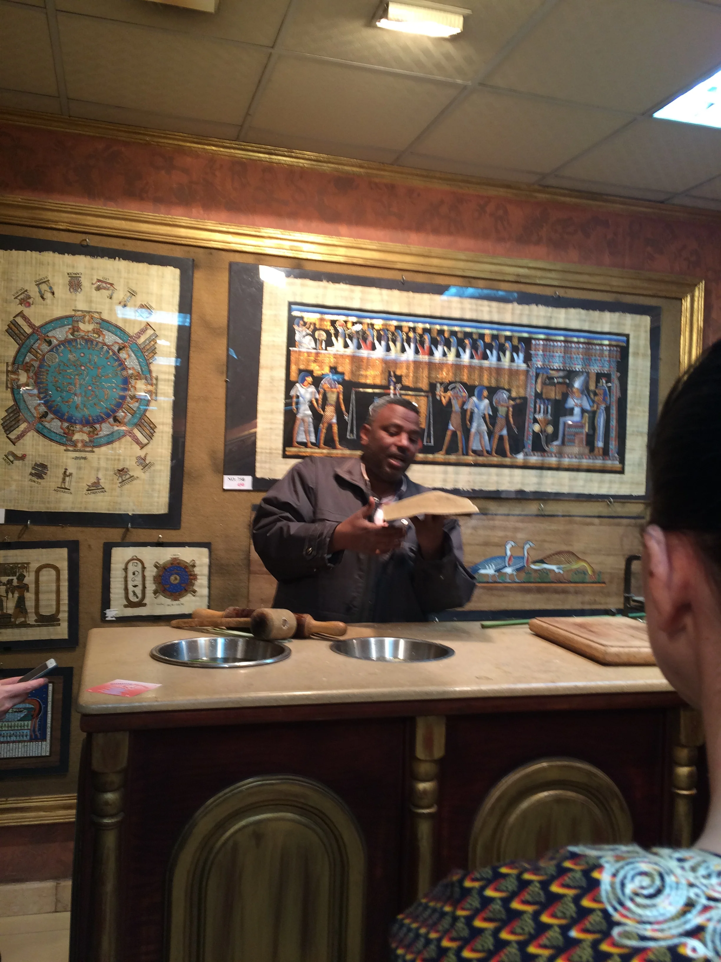 After the visit we travel to a local Papyrus art shop. Since we visited a shop on our own we enjoyed the demo of the process and wandered without any purchases. Next stop, lunch with the group at a traditional Egyptian restaurant. The food in Egypt is very cheap, for less than $5 we have soup, a choice of meat with sides and fruit for desert. It is very good.