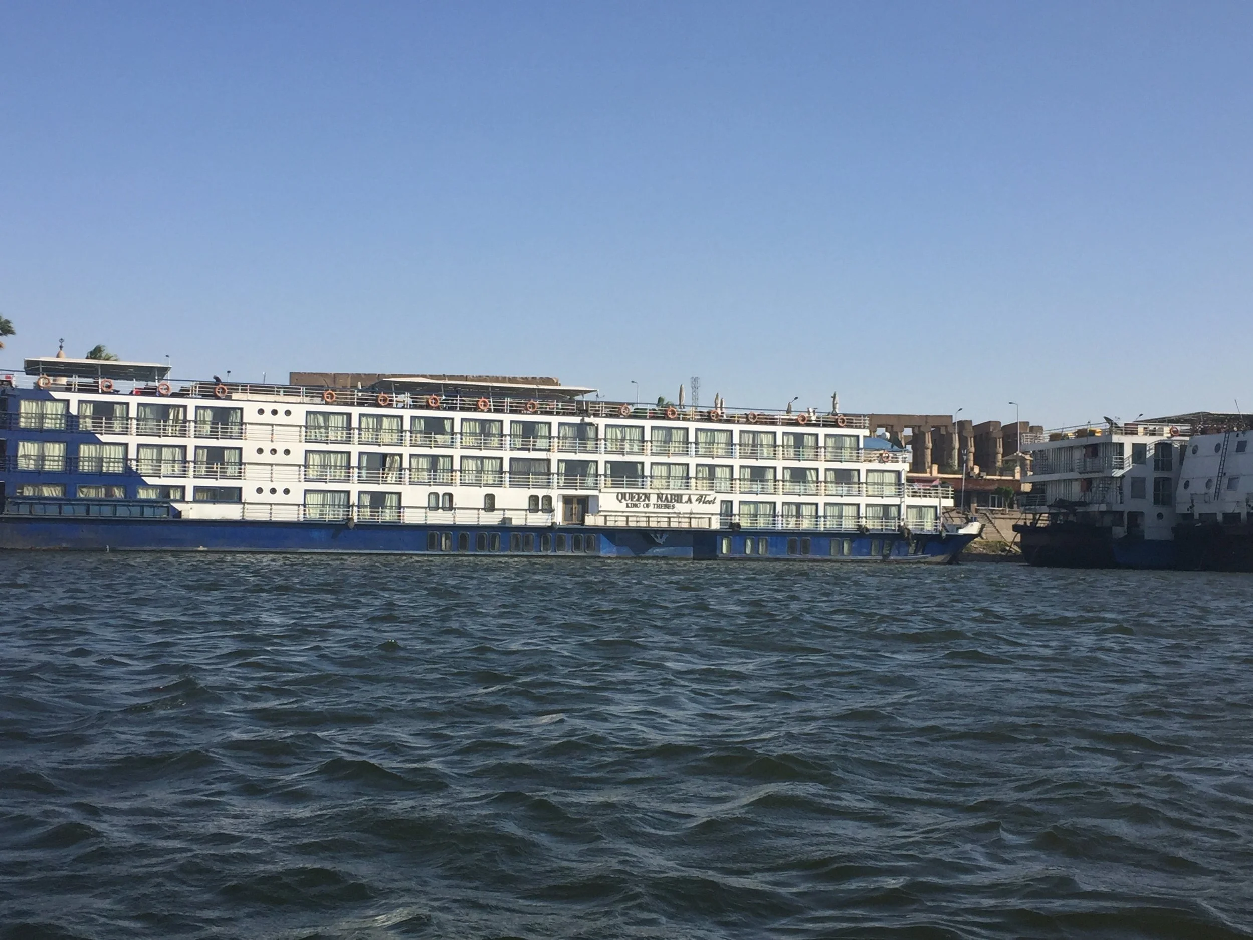 We travel the 2.5 hours back to Luxor and our cruise ship. It is a race again, the ship will sail at 1:30. Sam our guide arranged a special van to meet us on the side of the road to get to the ship and we split with the large group again. We also meet our cruise guide Micky. We made the boat just in time and lunch was waiting for us.