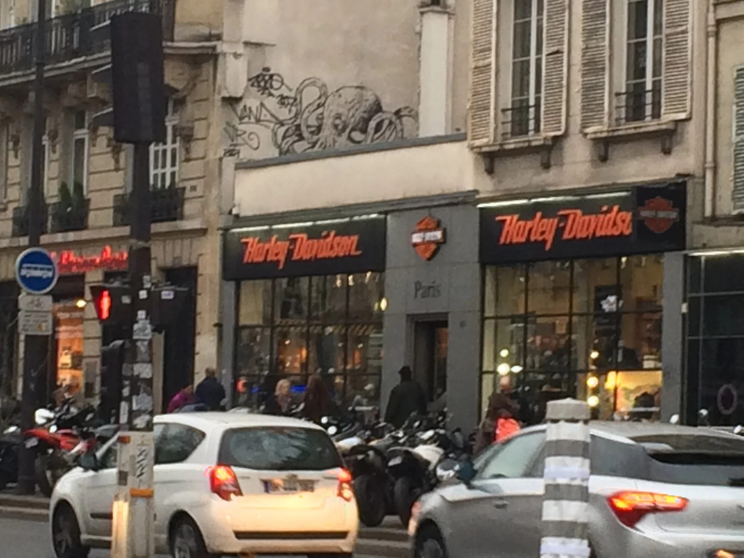 These scooter and bike shops were situated in customary Parisian store fronts alongside restaurants or other businesses. We also walked by government buildings alongside wide boulevards and traffic circles. When we reached the Seine river, we observed a wide river contained by carved cement walls with walkways and docking on each side. There appeared to be docked residential houseboats as well as typical river cruise commercial boats and nightclub boats. As we looked down the river, we saw the Notre Dame Cathedral in the distance. That was a first “WOW” moment, but not the last