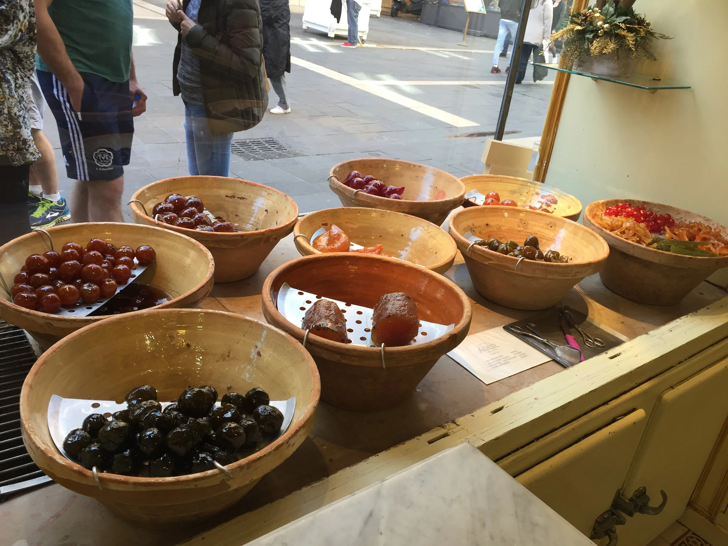 Day two. Today we went to the farmer’s market in the center of town, 3 blocks from our place. The weather is beautiful and sunny. One of Janet's favorite things on this trip is to shop for local food. The setting here is so different from the markets of South America, pristine clean, no stray dogs, no haggling prices, but it is still a great way to mix with the people and get an understanding of the culture through the food. Here we purchased fresh fish, veggies, cheeses, olives, bread and fruit for the next 4 days.