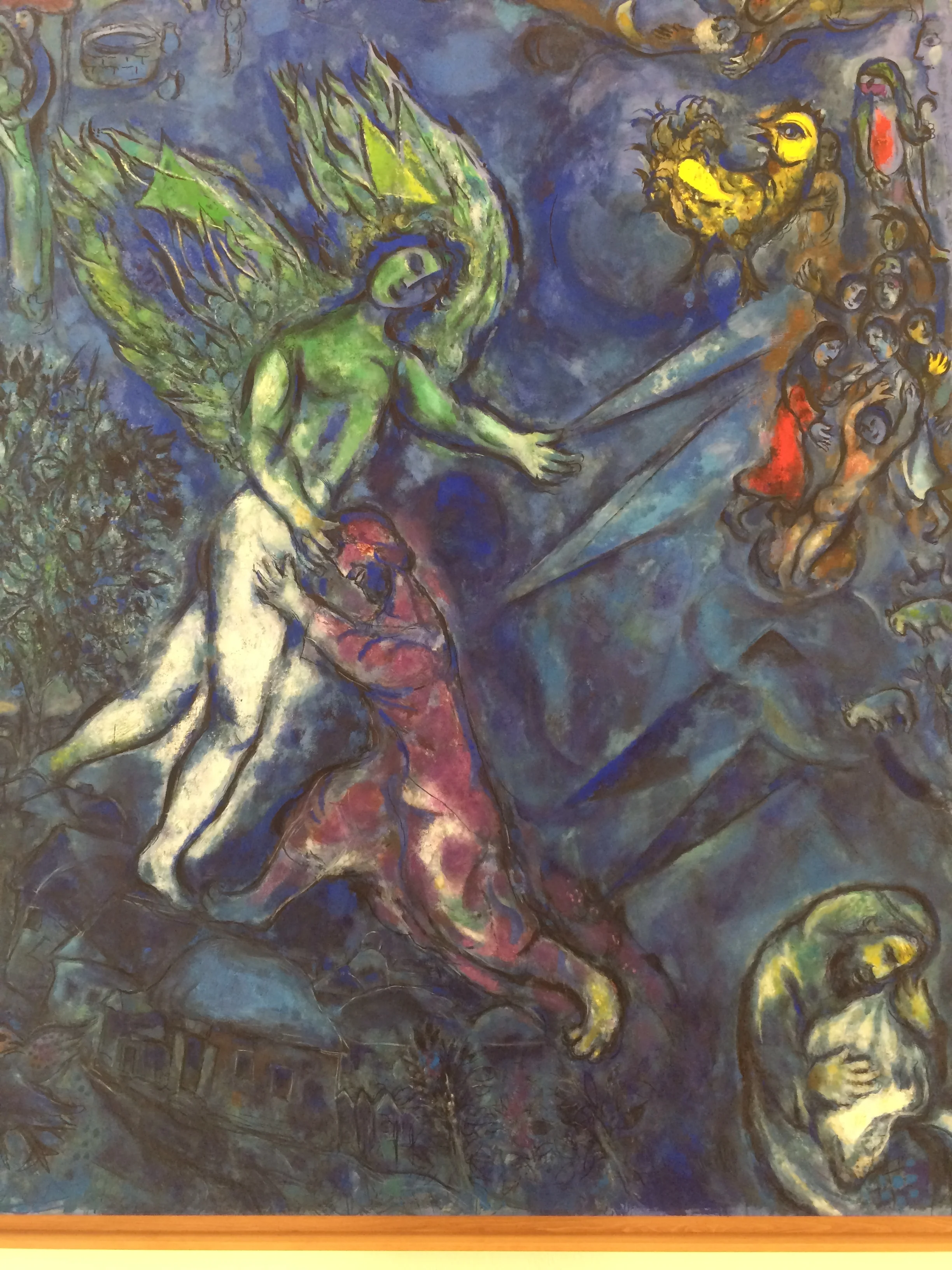 Day 6 and our last day in Nice, and France. and we went to see the Marc Chagall Museum. Chagall is a more contemporary artist than the other artist homes we have seen. This particular exhibit displays really large canvases presenting a biblical theme of the Old Testament in a modern format. These paintings where striking. With the help of an audio guide the complexity and creativity of the artist’s works were explained. This was a very enjoyable outing. Check out some examples of this work