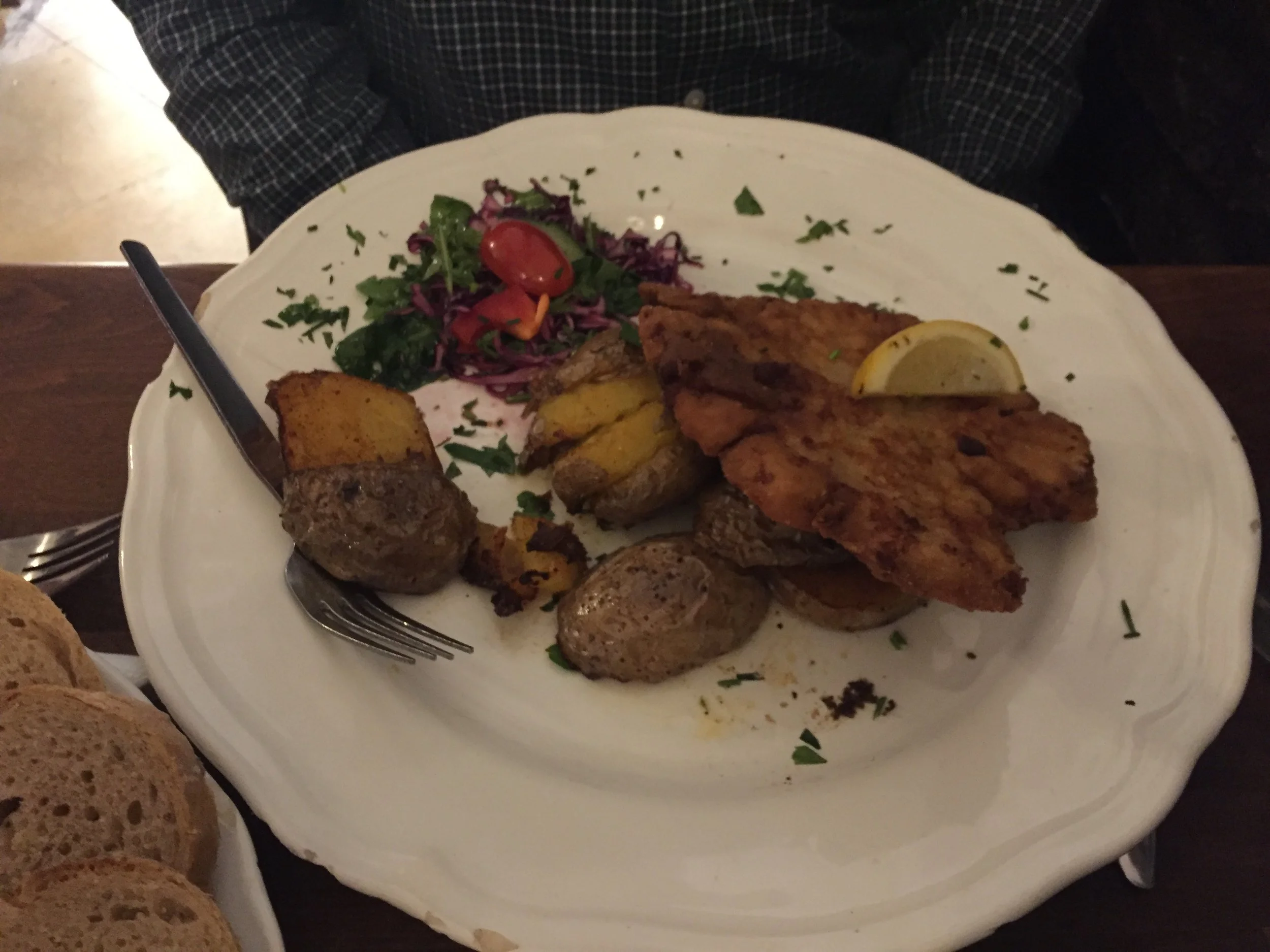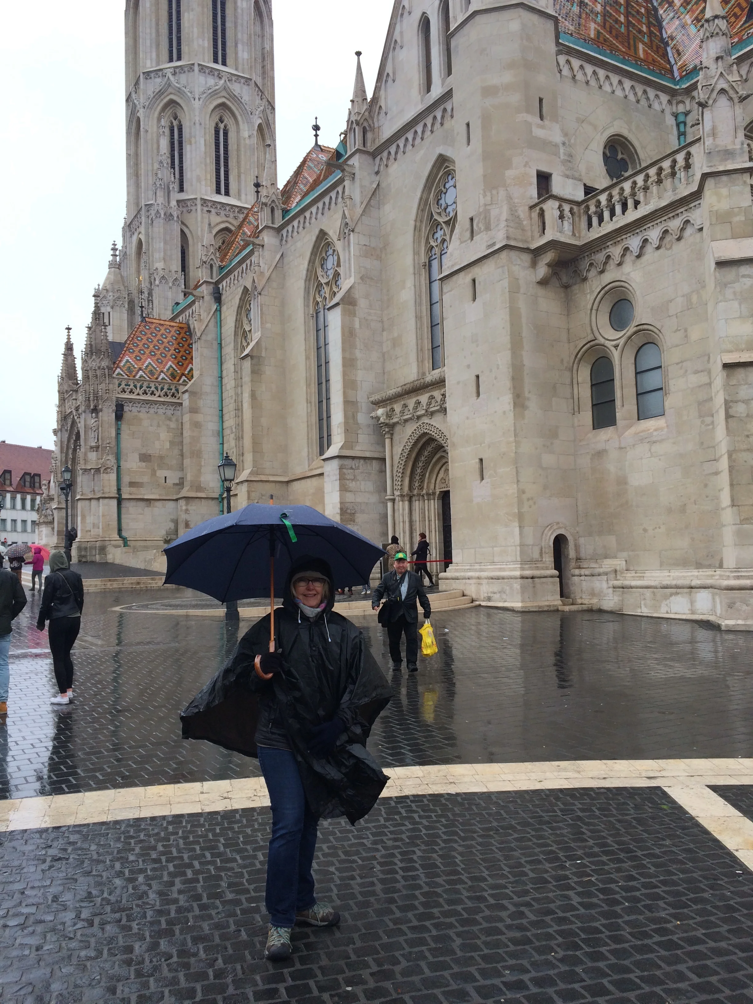 On our first full day, the rain continued and it was cold. The plan was a walking tour covering the Buda and Pest side. We bundled up and braved on. After an hour or so of heavy rain Teddy and Staci opted for warmth and headed back. We continued with our rain gear and we were glad when the tour ended with a great view of the Pest side and an offer to take us to a traditional lunch spot. For $8 we had a potato dish that looked like the cook added everything in the kitchen to it and some red cabbage, very filling and it was delicious. To stay out of the rain we found our way back by taking a bus and two trains. Wow, it was nice to come back to a warm home and Teddi and Staci. Later we opted for movies and dinner in, a perfect end to a wet and cold day.