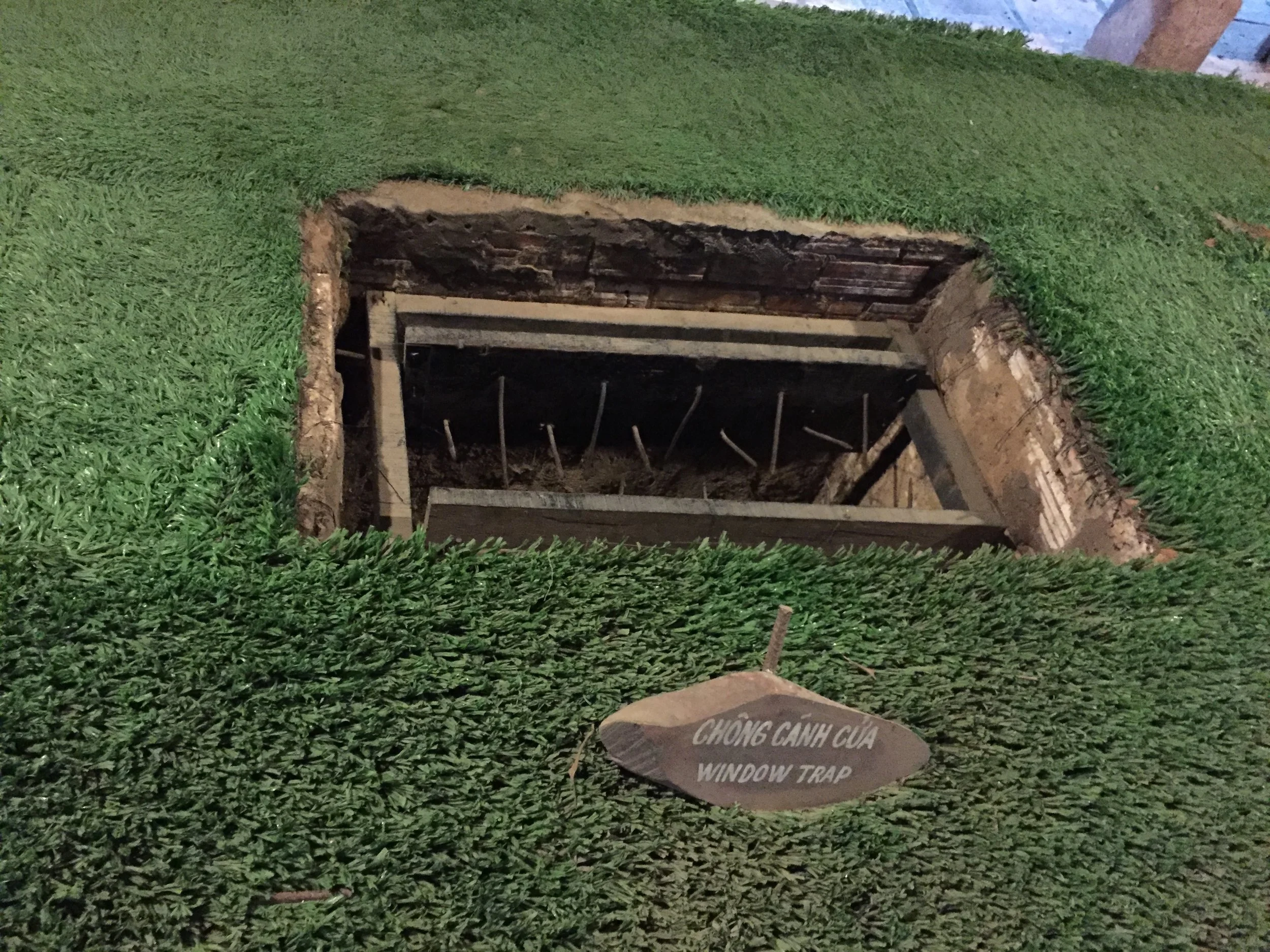 Strategically, the rice patty were often purposely flooded to detain the GIs. The areas around the cave openings where bobbie-trapped with snares, spike pits, and triggered devises. These devises of mayhem are displayed at this exhibit. Our guide demonstrates the trigger action.