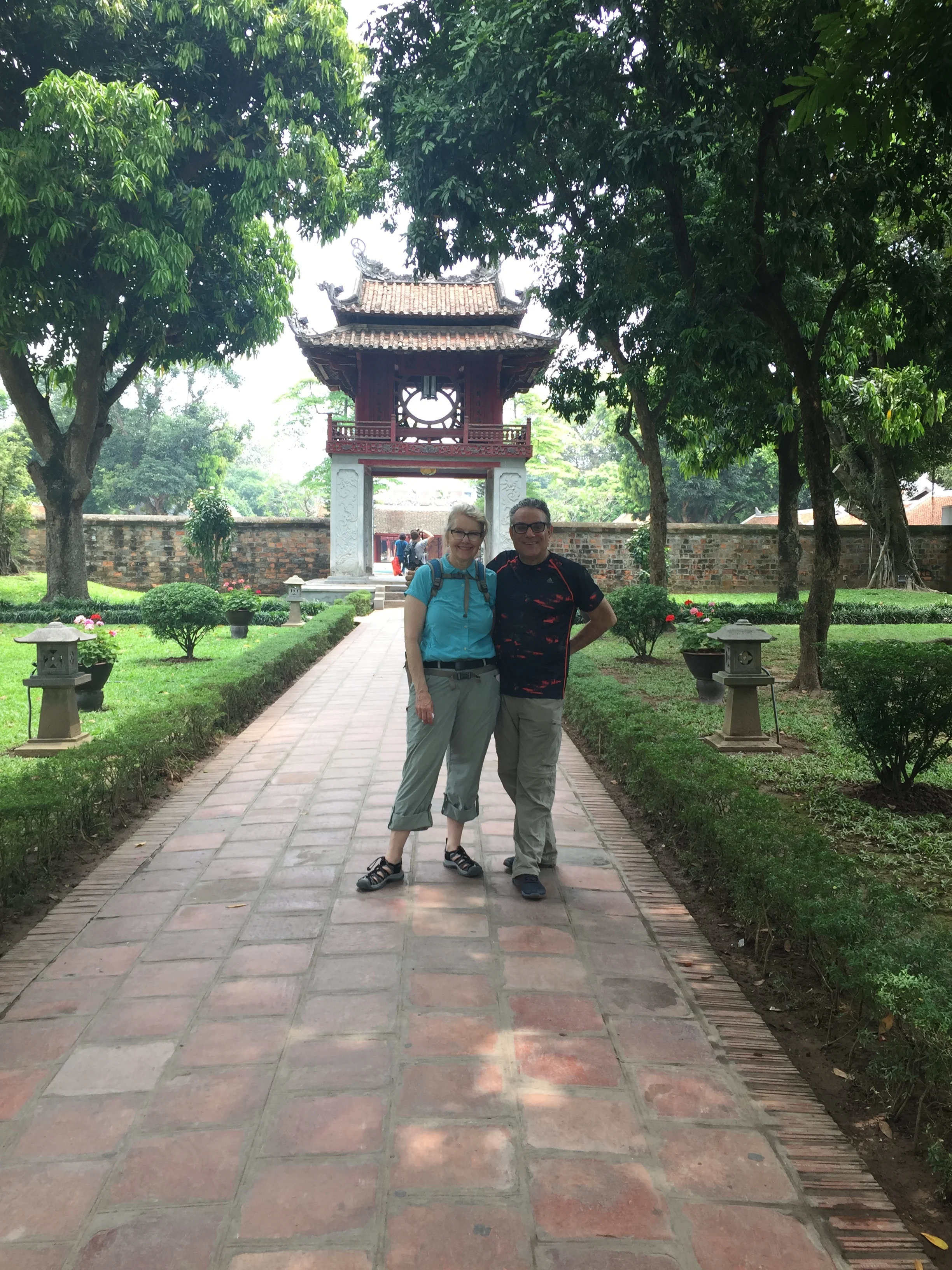 The most impressive site was the Hoa Lo Prison aka “Hanoi Hilton”. It is now a museum and has been reduced to about 10% of its original size built by the French Colonialists. Most of the displays and derisions are about the cruelty of the French government verses the bravery of the political prisoners who survived torture and those that escaped to become freedom fighters and leaders. It was the hatred of the Colonial French that created the backlash for freedom against the so called “imperial” influences and what the museum calls the “War of Unification”. Of course, this is where the USA stepped in. Surprisingly, the museum presentation was very respectful to the Americans. Most references were to the “good care” the captured pilots received, showing photos of sporting contests. There was a section dealing with Senator McCain’s rescue by the VC; not the other treatment we know he suffered. They asked visitors to fill out surveys. We thought the museum was respectful, even if not 100% accurate. Wehave heard that the southern Ho Chi Mingh City (Saigon) museums are far more critical of the USA. We’ll have to see.