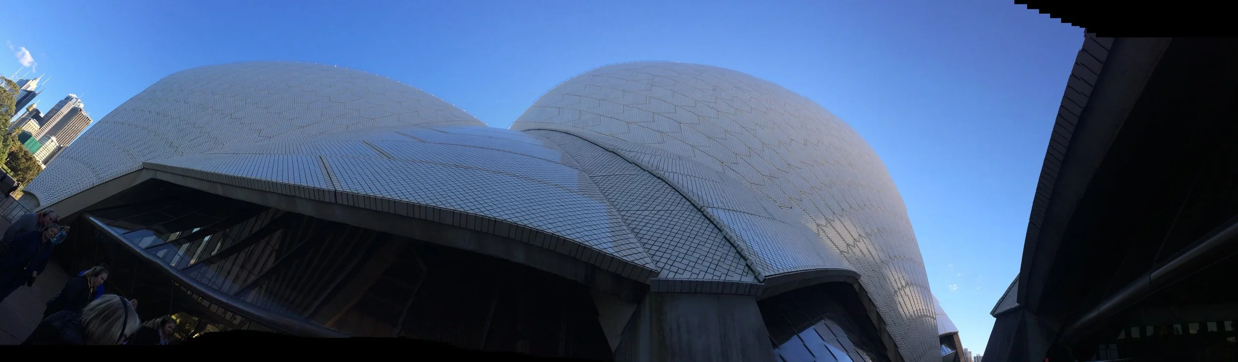 The Opera House has 6 auditoriums, and other useful interior spaces. The largest holds 3,000 patrons; others are slightly smaller and some are intimate at 300 people. These various sizes allow continuous presentations and production of all types and personality: Aboriginal dancing, Children's plays, modern theater, full orchestras, smaller bands and of course, Opera. The Opera House is always busy and inviting to the city’s population. Glass walls at 45 degrees to deflect blinding light open to the bay for receptions and weddings, especially in the “Purple Room”.