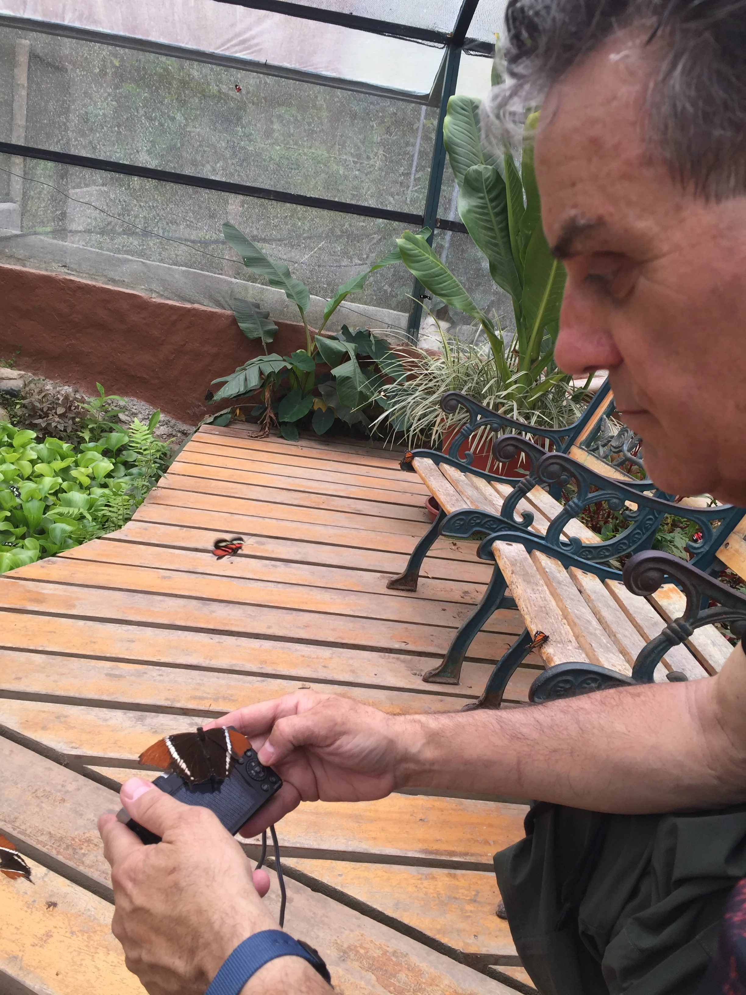 One of our plans is to tour the larger cities using free walking tours so on our first day in Cuenca we found a tour starting in the main square, as most of them do. This tour was small, just 4 of us total and our local guide who spoke very good English. The tour was great, we had a great overview of the city including a trip to the local market with food samples, see Frank below with our samples, a trip to the Panama Hat Factory and a small INCA ruin right in the city.
